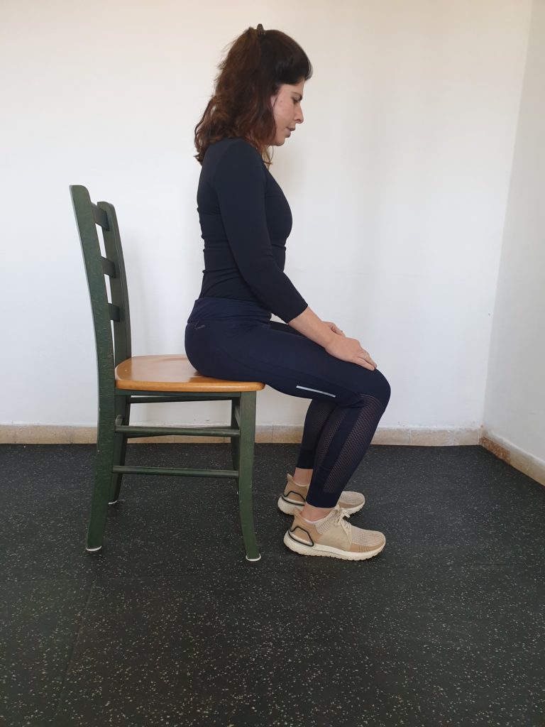 טיפ: אם הכיסא או הספה נמוכים מדי, הוסיפו כרית מתחת לישבן. הגובה הנוסף יקל בביצוע התרגיל. התרגול צריך להיות קשה, אך לא קשה מדי.