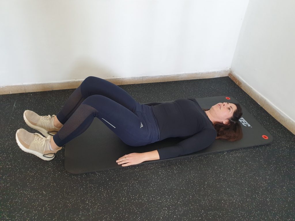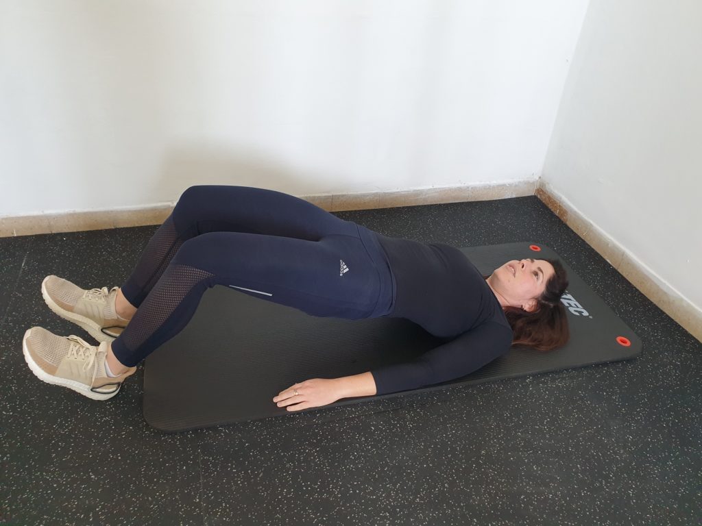 שיכבו על שטיח/ מזרן יוגה/מיטה. כופפו את הברכיים והניחו את כפות הרגליים על הרצפה. הרימו את האגן לשיא הגובה (תוך כדי ספירה) והורידו חזרה לרצפה בצורה מבוקרת.