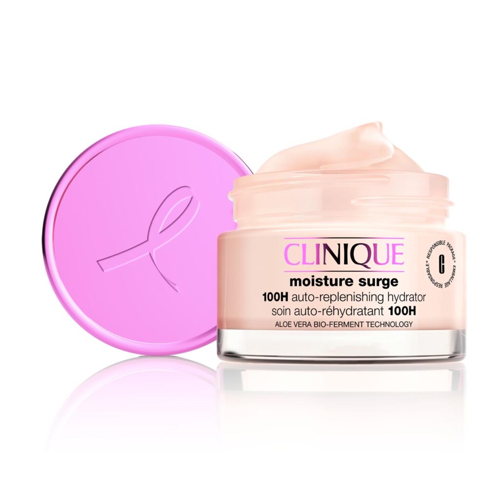 קרם הלחות המוביל של קליניק במהדורה מיוחדת ומוגבלת לאספנים, לתמיכה בחודש המודעות לסרטן השד. מכסה הקרם ורוד עם הטבעה של הסרט הוורוד המזוהה עם חודש המודעות.